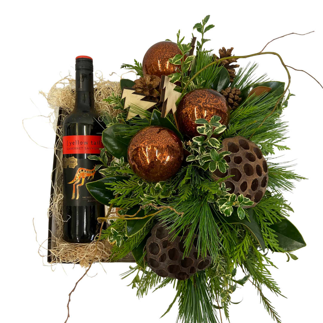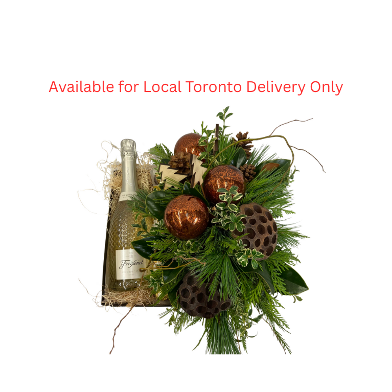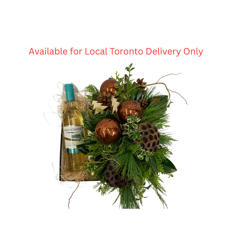 The Rustic Greens Wine Box features a beautiful and fragrant arrangement of winter greenery and beautiful accents. Your choice of premium wine, prosecco or champagne and delicious chocolates. Let us deliver this fabulously fragrant gift set to your special someone or a dear friend!